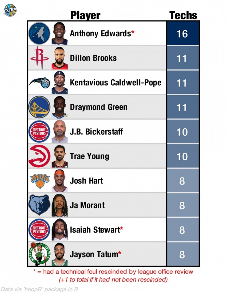 相關(guān)新聞>>>?NBA官方:愛(ài)德華茲本賽季累計16次技術(shù)犯規 停薪禁賽一場(chǎng)