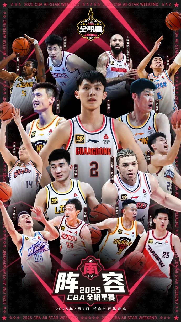 何為全明星賽?說(shuō)白了就是球星歡聚一堂給球迷們獻禮的比賽。顯然,CBA聯(lián)賽只讀懂了“歡聚一堂”這個(gè)詞。2025年CBA全明星周末正賽的名單是: