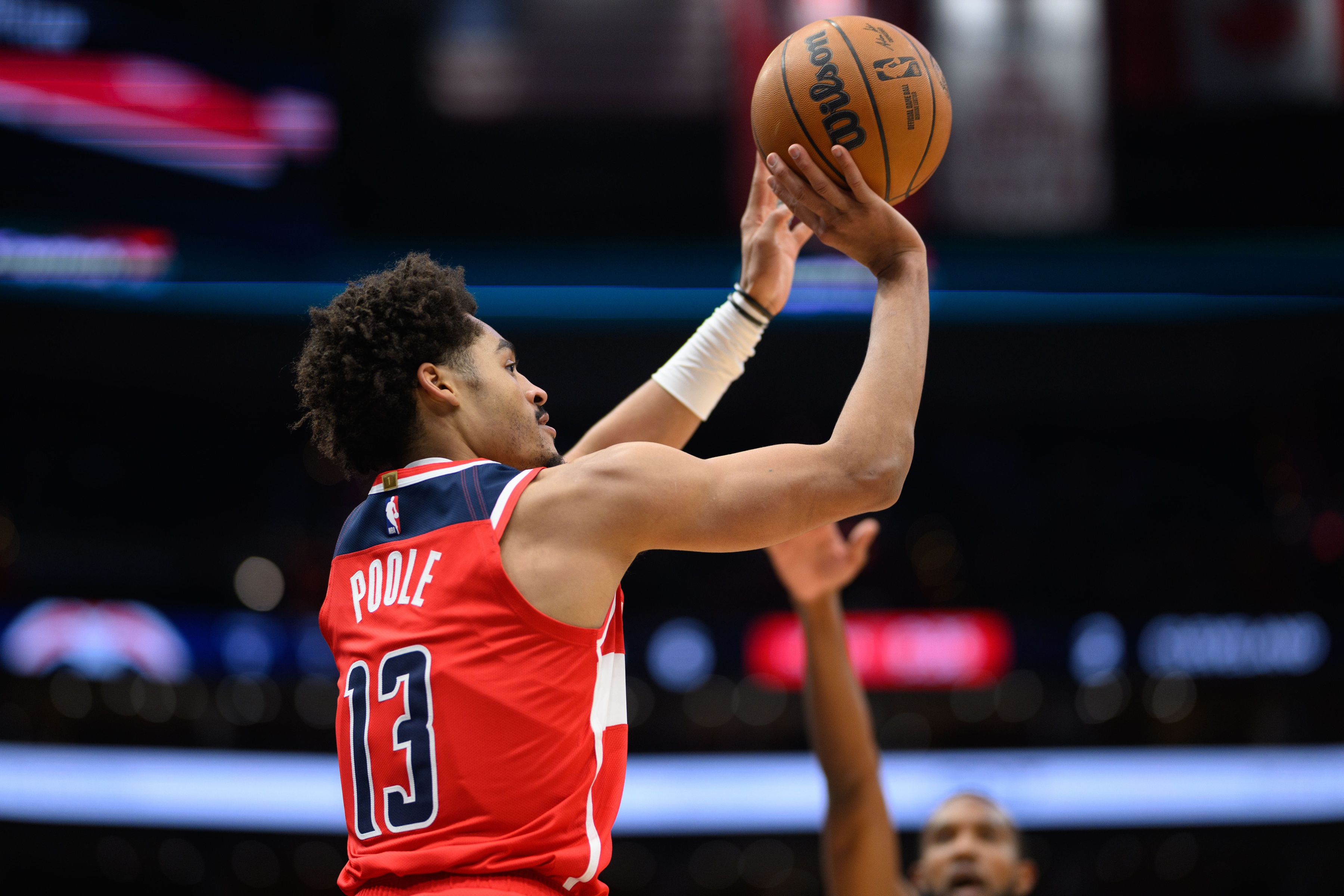 奇才球員普爾本場(chǎng)比賽復出,上半場(chǎng)他展現出不俗手感,半場(chǎng)結束前還投進(jìn)一記漂移三分。