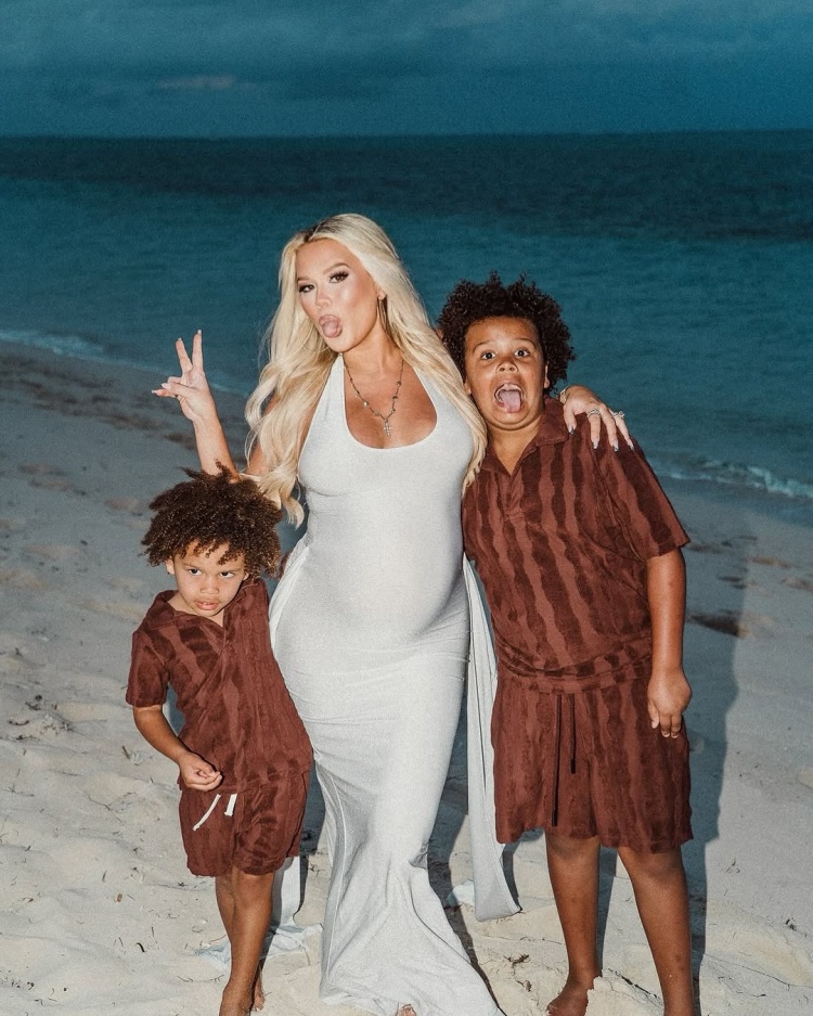 特克斯和凱科斯群島!蘭德?tīng)柶拮訒窈蛢蓚€(gè)兒子的旅行照-樂(lè )球直播