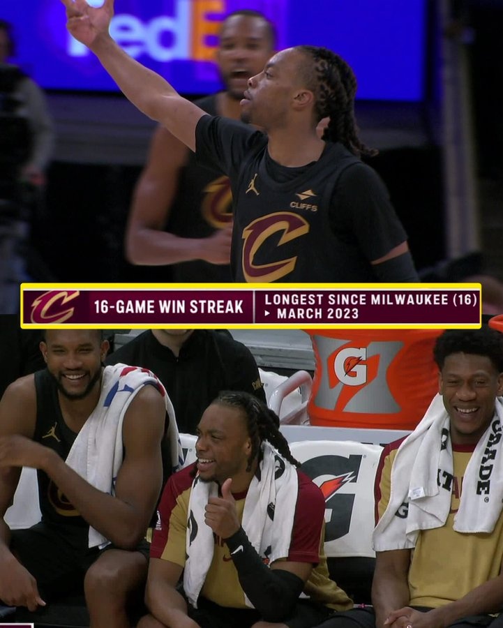 轉播方給出數據,騎士的16連勝也是自2023年3月的雄鹿以來(lái),聯(lián)盟最長(cháng)的連勝紀錄。