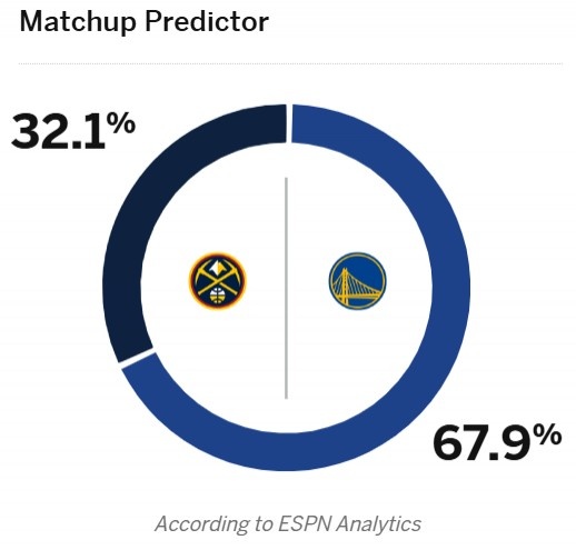 今天,ESPN預測了本場(chǎng)比賽的勝率,其中,勇士為67.9%,掘金為32.1%。