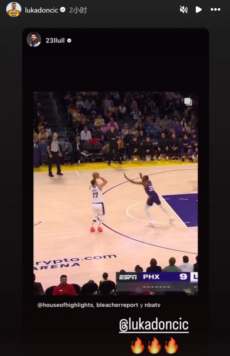 賽后,東契奇本人在INS轉發(fā)了這一高難度進(jìn)球。