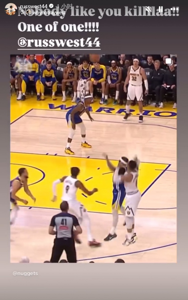賽后,威少轉發(fā)自己的關(guān)鍵三分,該動(dòng)態(tài)稱(chēng)贊威少道:“沒(méi)有人像你一樣,殺手,獨一無(wú)二的威少?!?/p>
