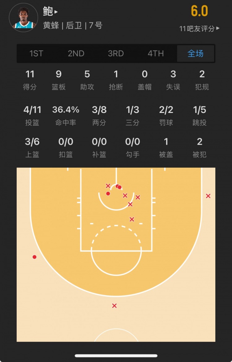 黃蜂落選秀 達米恩-鮑 登場(chǎng)33.1分鐘