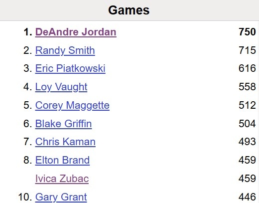 據統計,這是祖巴茨代表快船出戰的第460場(chǎng)比賽,超越埃爾德-布蘭德,上升至隊史第八位。