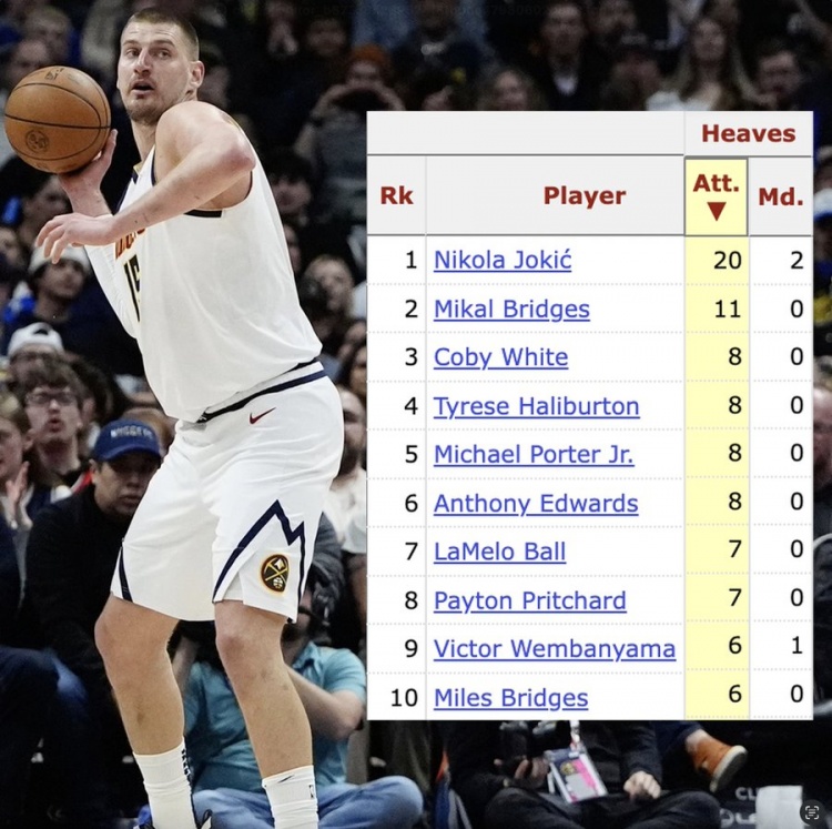 本賽季后場(chǎng)三分投籃:約基奇20中2 大橋11中0 文班亞馬6中1-樂(lè )球直播