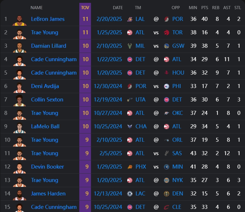 11次失誤也追平了本賽季聯(lián)盟球員單場(chǎng)失誤數紀錄,特雷-楊曾在1月對陣猛龍的比賽中也出現過(guò)11次失誤。