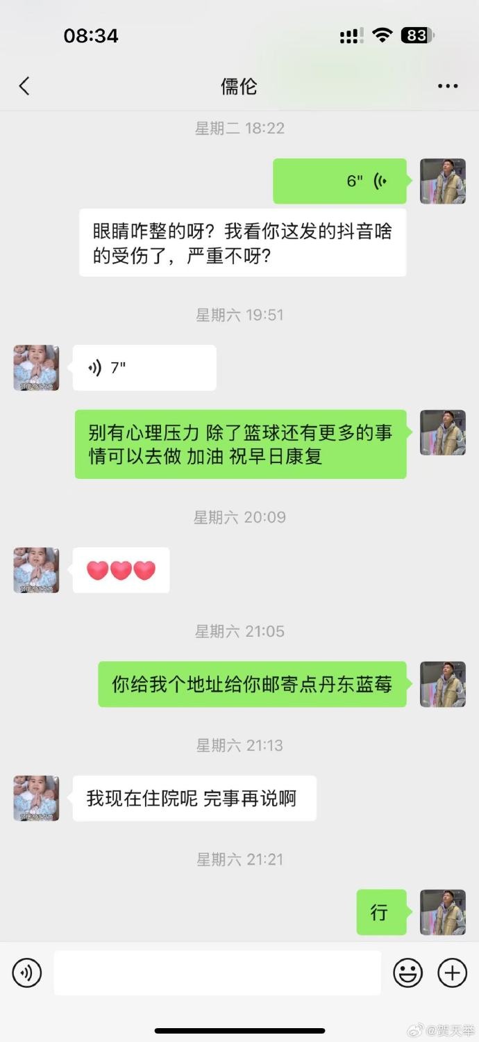 “本不想說(shuō)什么,但請大家別再拿我當話(huà)題?!苯找詠?lái)本人在網(wǎng)上遭到莫名其妙的詆毀,而且被一些非常不著(zhù)邊際的話(huà)術(shù)以及編造的話(huà)題拽進(jìn)輿論,這讓我倍感心痛與無(wú)奈。首先對于艾倫在廣州隊內訓練中意外眼部受傷,我在得知消息的第一時(shí)間發(fā)消息表示關(guān)心和鼓勵。作為運動(dòng)員和球迷來(lái)說(shuō)這都是無(wú)法接受也不愿意看到的事情,我也和大家一樣。我能理解大家把自己的偶像當家人一樣維護,但事情的發(fā)生當事人和在現場(chǎng)工作的人員是最了解事情經(jīng)過(guò)的,可請問(wèn),你們不去問(wèn)清事實(shí),拿我當話(huà)題“做甚?”你們的居心又有何意?我退役了,感謝依然記得我的人。讓我依然有存在感,可當下我只希望安心做好我眼下的每一個(gè)工作,不希望再遭到一些人的不實(shí)的網(wǎng)絡(luò )圍攻。你們胡說(shuō)八道,我可以當看不見(jiàn),身正不怕影子斜,可我不允許你們惡意的不實(shí)言論影響我的家人。我作為一個(gè)退役籃球運動(dòng)員,深知在互聯(lián)網(wǎng)上的一些不正當言論會(huì )影響當事人的生活和工作,所以我在直播的時(shí)候回復你們,我只述除我自己了解的,知道的,和我有話(huà)語(yǔ)權并且屬實(shí)的事去表述,因為不想因為我的言論而影響到他人。所以再請問(wèn),如果我一心想要保護好身邊的人到最后都能夠成為眾矢之的遭到謾罵,那是不是逼著(zhù)當事人都要用極端的方式去處理事情?我現在作為一個(gè)自媒體人我知道所謂的流量是非常重要的,但是我更知道做人做事才是關(guān)鍵。我覺(jué)得我不需要借助任何手段去蹭流量甚至去詆毀別人獲取流量,我也相信我可以努力做好自己該做的事情給我自己爭取到流量,就像我給大家推薦我們家鄉草莓和藍莓一樣,踏踏實(shí)實(shí)做人,認認真真做事。最后我也非常正式的回應一部分在網(wǎng)上攻擊謾罵我的人 ,如果你們再散播不良言論對我以及家人造成影響,那么我將拿起法律的武器維護自己的合法權益。