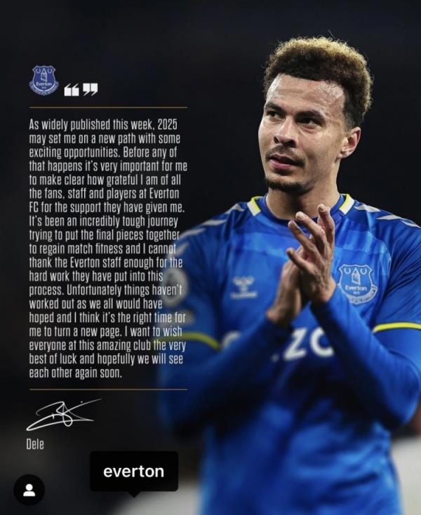阿里寫(xiě)道:“正如本周大家廣泛談?wù)摰哪菢樱?025年我可能會(huì )走上一條新的道路,因為有一些令人感到興奮的的機會(huì )。在這一切發(fā)生之前,我必須要先明確的表達一下我對于所有球迷的感激之情,以及埃弗頓所有工作人員以及球員對我的支持。