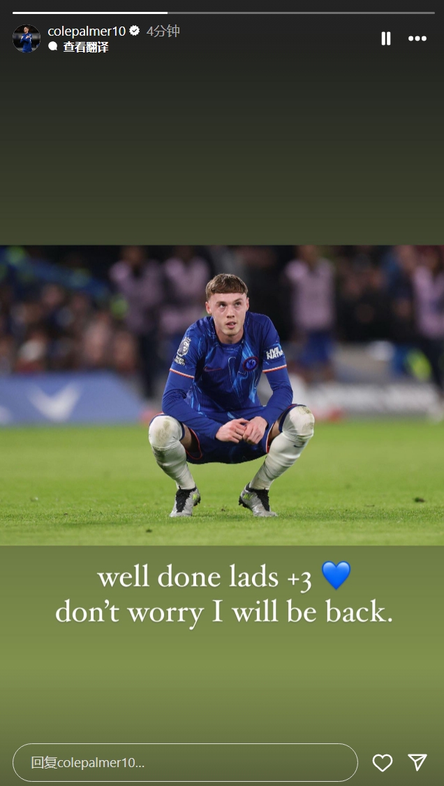 本場(chǎng)比賽帕爾默首發(fā)出戰,賽后他也在個(gè)人社媒曬出本場(chǎng)照片,配文寫(xiě)道:“干得漂亮,伙計們,拿下三分!不用擔心,我會(huì )回來(lái)的?!?/p>