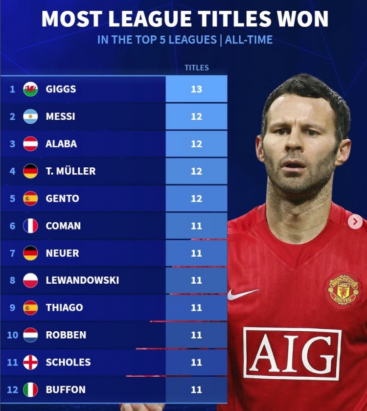 11冠,科曼、諾伊爾、萊萬(wàn)、蒂亞戈、羅本、斯科爾斯、布馮
