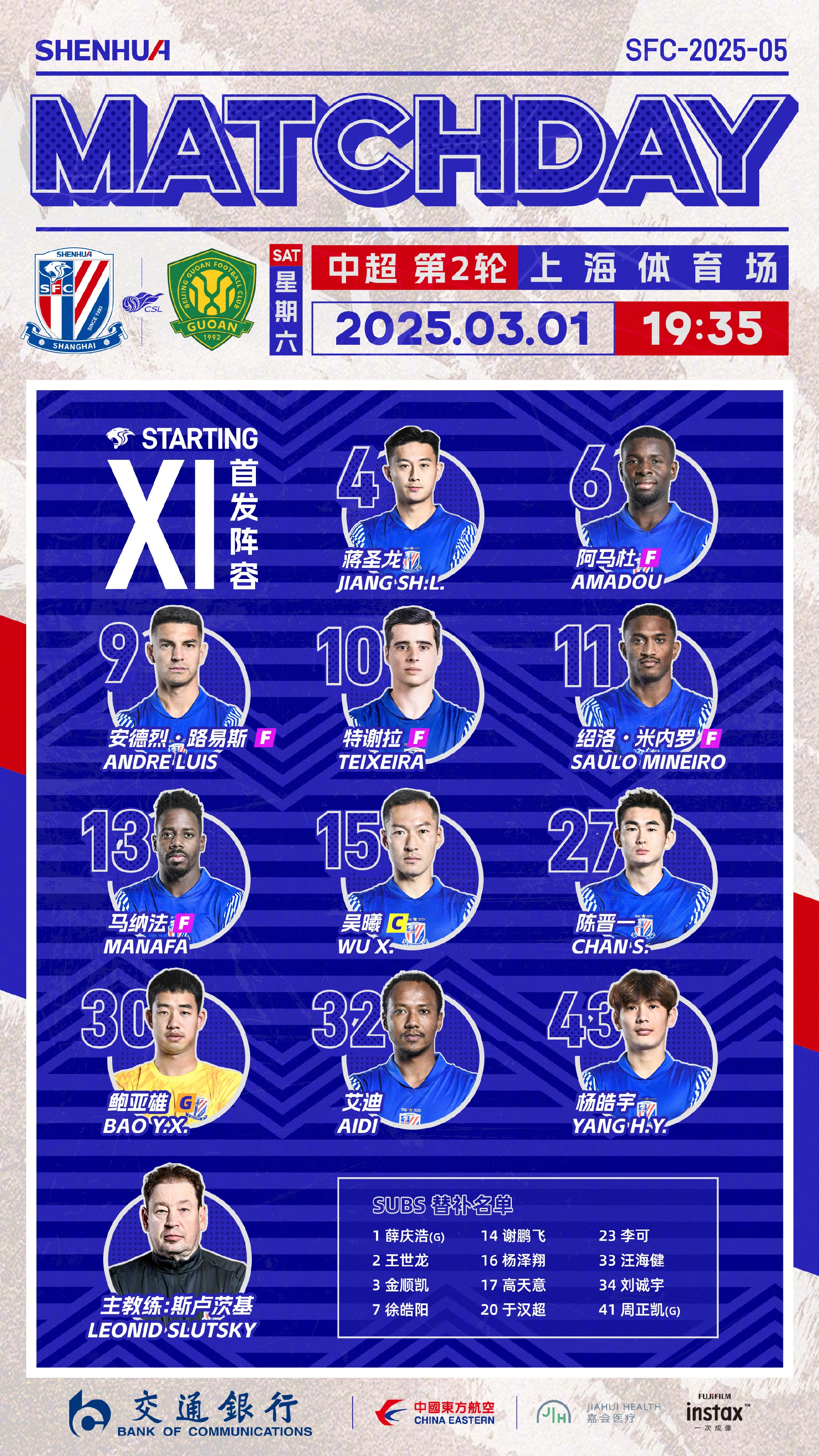 中超聯(lián)賽第2輪 上海申花vs北京國安 首發(fā)名單 ???-樂(lè )球直播