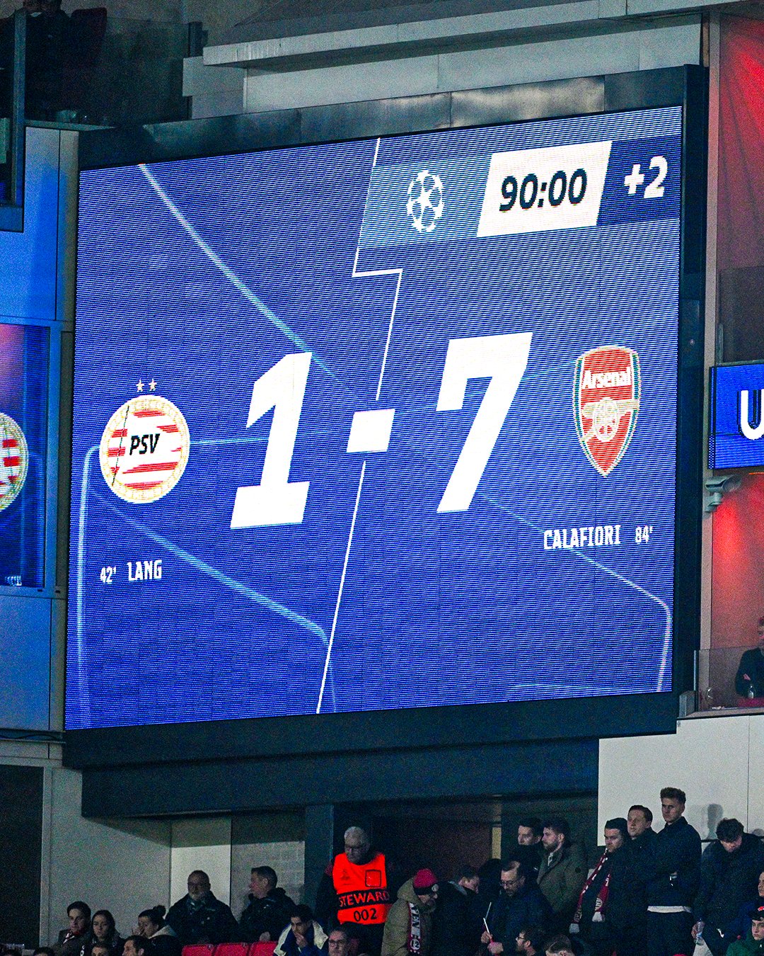 計算題:阿森納7-1埃因霍溫,埃因霍溫3-1尤文,那阿森納vs尤文幾比幾?