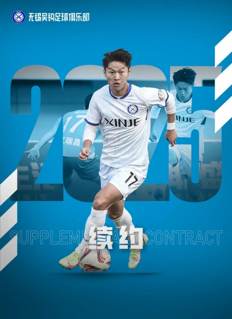 我們在此鄭重宣布,經(jīng)雙方協(xié)商一致,無(wú)錫吳鉤足球俱樂(lè )部與球員胡升嘉完成續約。2025賽季,他將繼續為無(wú)錫而戰!