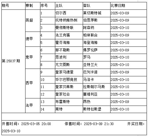 傳足勝負彩第25037期中不乏焦點(diǎn)賽事,其中曼聯(lián)對陣阿森納尤為引人關(guān)注。此外,切爾西主場(chǎng)面對萊切斯特城,尤文與亞特蘭大將在都靈安聯(lián)球場(chǎng)展開(kāi)對決,皇馬則德比對陣巴列卡諾。
