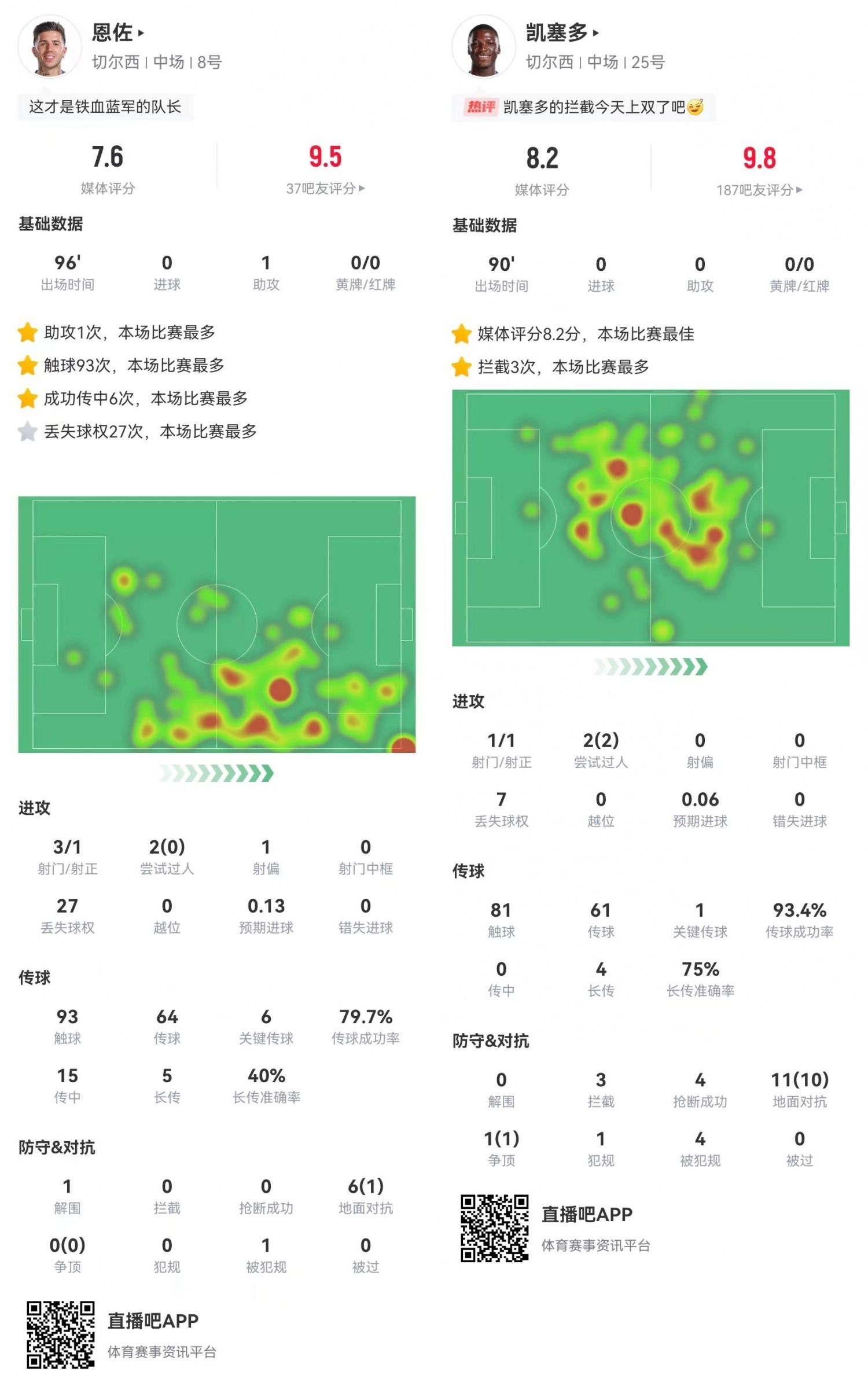 本場(chǎng)比賽恩佐與凱塞多的發(fā)揮可圈可點(diǎn)?!皣L試助攻王”恩佐總算“撿”到一個(gè)助攻,庫庫雷利亞的制勝球便是由恩佐傳導。凱塞多則繼續自己的戰神級發(fā)揮,本場(chǎng)比賽貢獻12次對抗11次成功,還有3攔截4搶斷0被過(guò)的鐵閘表現。切爾西的雙腰進(jìn)可攻退可守,正是藍軍本賽季戰績(jì)不錯的原因之一。