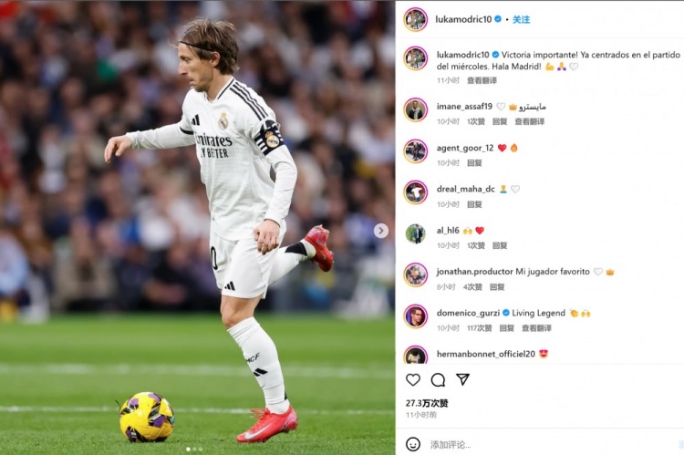 莫德里奇也曬出自己的比賽照,并配文:“重要的勝利!現在我們要專(zhuān)注于周三的比賽!馬德里前進(jìn)!”