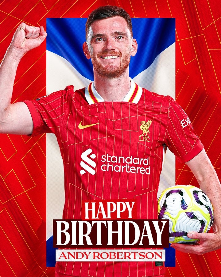 3月11日訊 今天是利物浦后衛羅伯遜的31歲生日,俱樂(lè )部官推曬海報送上祝福。