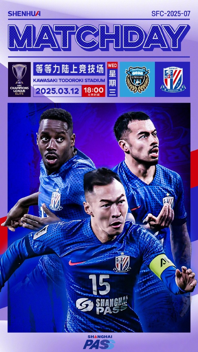 3月12日訊 今晚申花將在亞冠精英聯(lián)賽1/8決賽次回合客場(chǎng)對陣川崎前鋒,賽前申花俱樂(lè )部發(fā)布了本場(chǎng)比賽的海報。