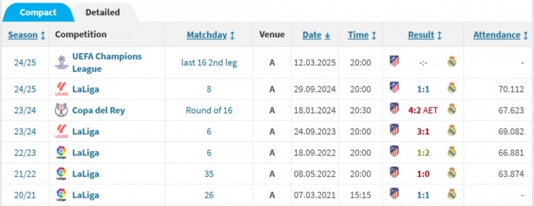 歷史上,皇馬在各項賽事共計117次客戰馬競,戰績(jì)?yōu)?4勝30平43負,進(jìn)163球丟170球。