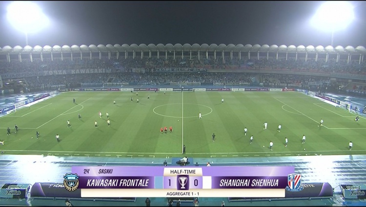 上半場(chǎng)比賽結束,上海申花0-1川崎前鋒。