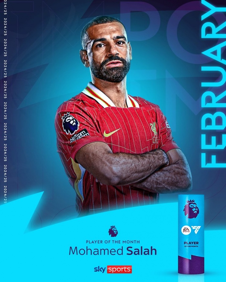 3月13日訊 英超官方宣布,利物浦邊鋒薩拉赫當選為2月最佳球員。