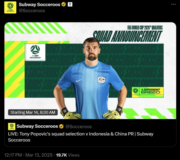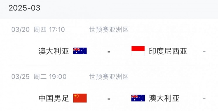 本月世預賽,澳大利亞將主場(chǎng)戰印尼,客場(chǎng)對陣中國隊。