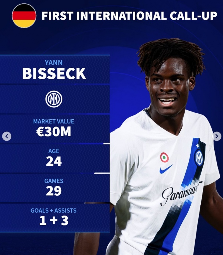 比塞克(國米,德國),3000萬(wàn)歐,24歲。29場(chǎng)1球3助攻