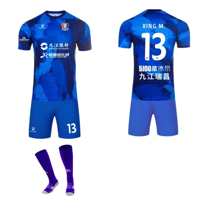 第一客場(chǎng)戰袍采用沉穩大氣的深藍色,彰顯球隊沉穩冷靜、從容不迫的氣質(zhì)。以浩瀚星空為靈感,將深邃的藍色作為主色調,象征著(zhù)江西廬山足球俱樂(lè )部胸懷遠大理想,在綠茵場(chǎng)上追逐夢(mèng)想,永不言棄的精神。