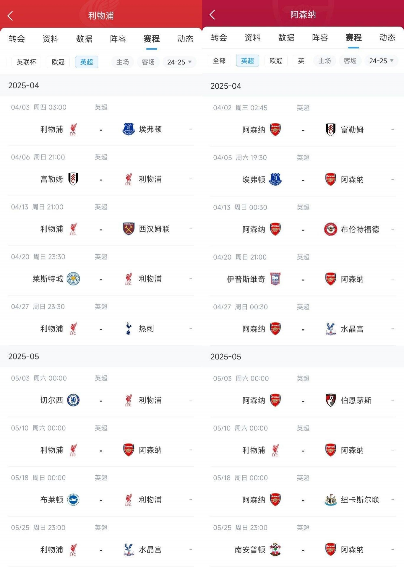 兩隊最后9輪的賽程對比如下,利物浦的對手稍微難一些,球隊將在35-37輪分別對陣切爾西、阿森納和布萊頓。此外第34輪對陣熱刺也不容忽視。阿森納所棘手的對手則主要是第36和37輪的利物浦和紐卡。