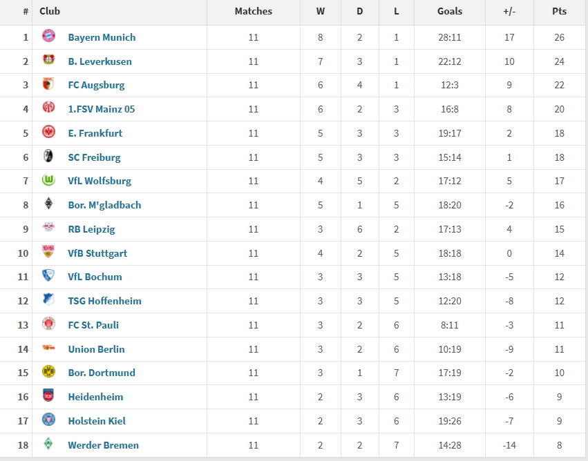 03月18日訊 2025年至今,德甲共進(jìn)行了11場(chǎng)比賽,其中拜仁拿到26分最高,其次是24分的勒沃庫森,而萊比錫、多特分別僅拿到了15分和10分。