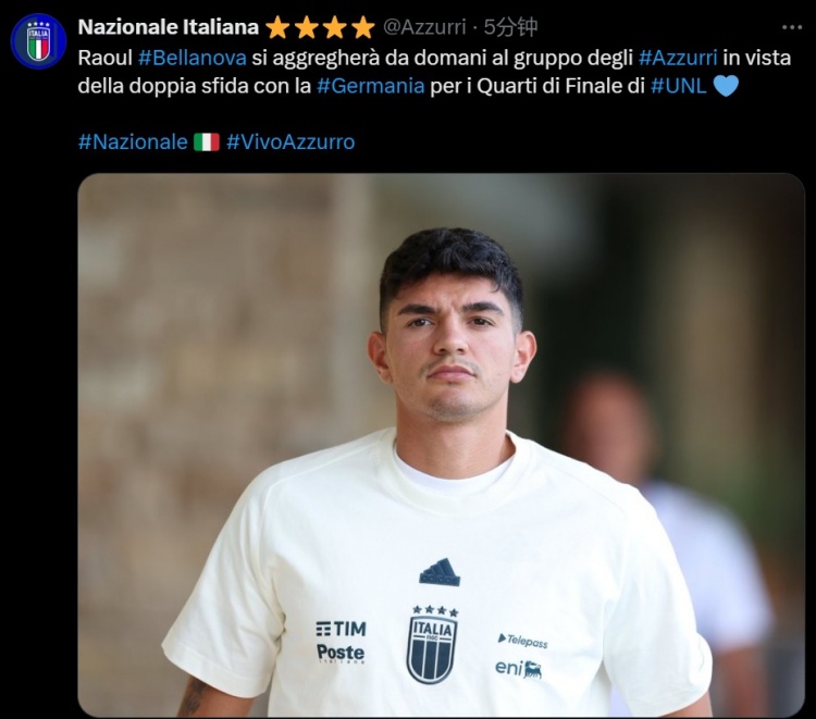 3月19日訊 意大利隊官方宣布,補招亞特蘭大24歲右后衛貝拉諾瓦,他將于明日加入球隊集訓。