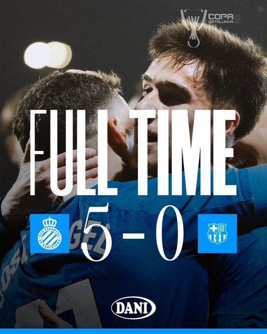 3月20日訊 今天凌晨,西班牙人在加泰杯半決賽5-0大勝巴薩。