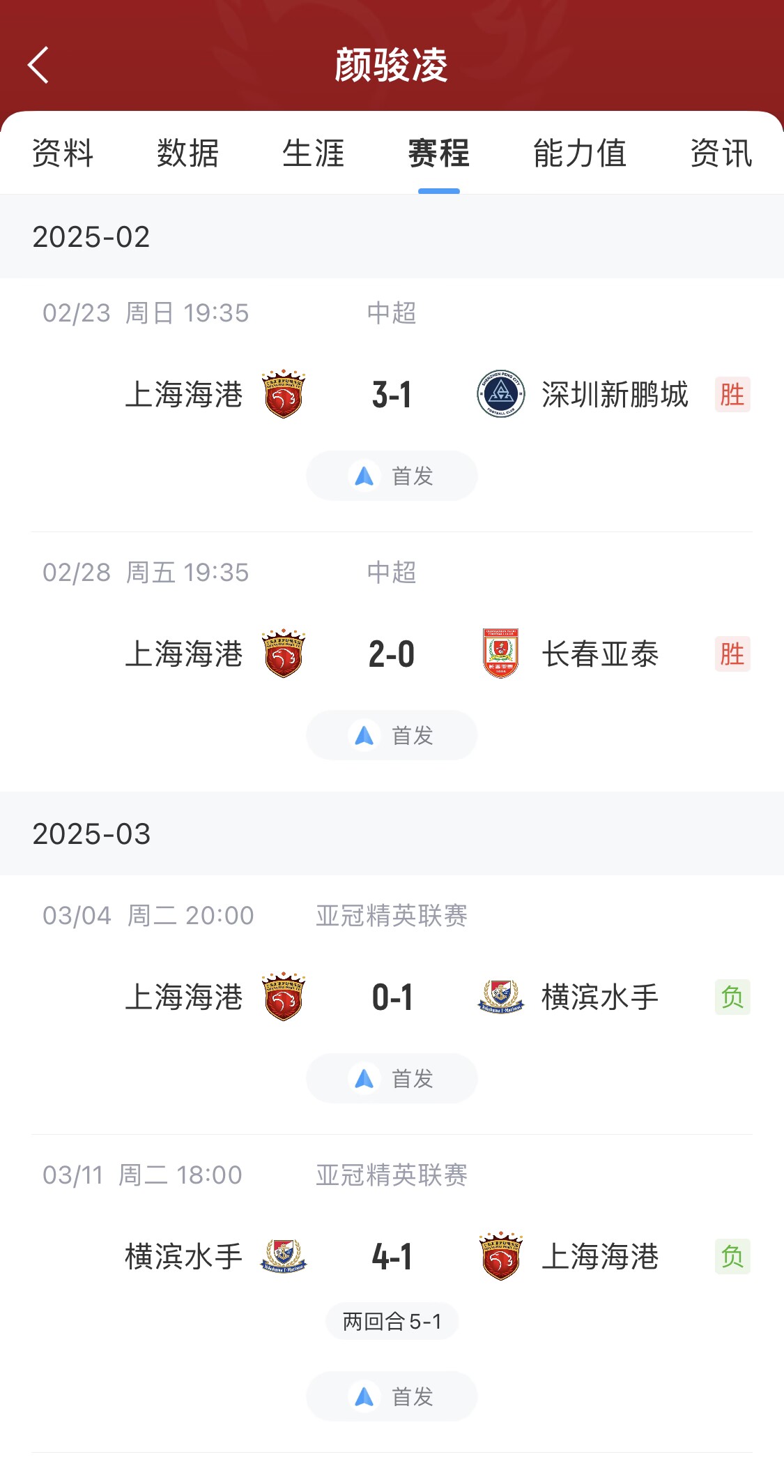 但2025賽季中超首輪泰山vs河南,王大雷出擊踢倒對手染紅,2月23日之后未參加正式比賽。而顏駿凌出戰了中超+亞冠的所有比賽。