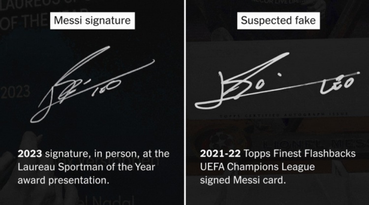 3月27日訊 The Athletic深度報道了一件涉及梅西簽名球星卡被指為“假簽名”的事件,引發(fā)了收藏界對于球星簽名真偽的質(zhì)疑。