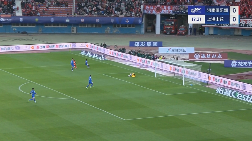 03月29日訊 中超第3輪,河南vs申花。比賽第17分鐘,阿奇姆彭邊路超車(chē)蔣圣龍,隨后小角度打門(mén)被撲。
