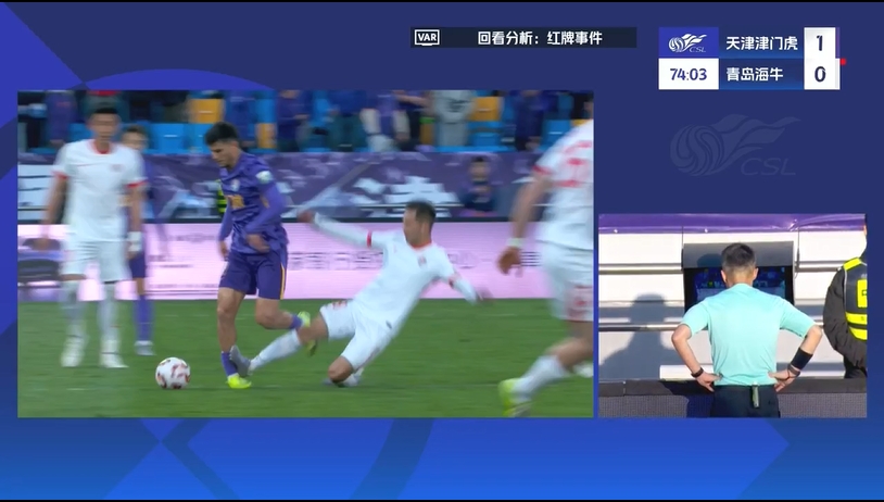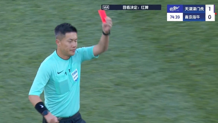 比賽第71分鐘,林創(chuàng )益亮鞋底飛鏟薩爾瓦多支撐腿,裁判先是出示黃牌,后經(jīng)VAR改判將其直紅罰下,海牛僅剩9人應戰。此前,在上半場(chǎng)第42分鐘,金洋洋已經(jīng)因鏟球犯規被直紅罰下。