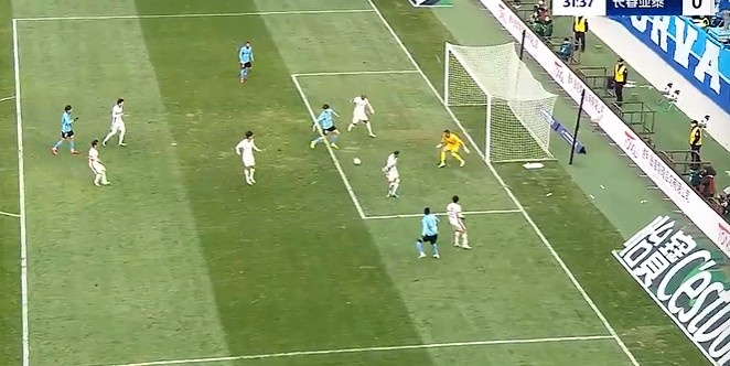 第14分鐘,亞泰左路玄智健下底傳到禁區徐越門(mén)前頭球頂偏了?!?/p>