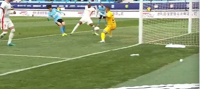 第31分鐘,大連英博首開(kāi)記錄!馬萊萊右路禁區橫傳門(mén)前朱鵬宇推射破門(mén),大連英博1-0長(cháng)春亞泰?!?/strong>