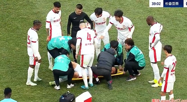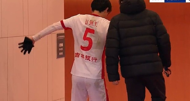 第38分鐘,譚龍拼搶中受傷倒地被擔架抬出場(chǎng)外,同時(shí)李申圓受傷堅持不住回更衣室?!?/p>