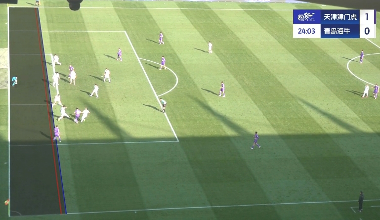 比賽第23分鐘,巴頓禁區內抽射破門(mén),隨后VAR介入,判罰阿代米在接應王秋明傳球時(shí)越位在先,進(jìn)球無(wú)效。場(chǎng)上比分仍為津門(mén)虎1-0海牛。