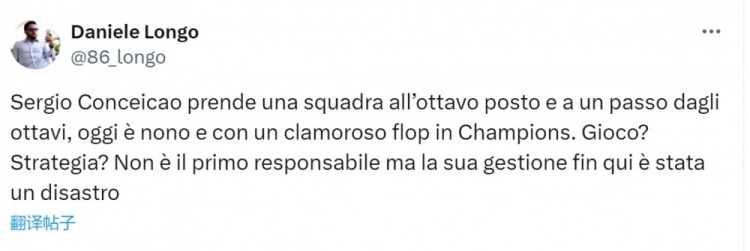3月31日訊 米蘭跟隊記者隆戈社媒發(fā)文,批評了孔塞桑在米蘭的執教表現。