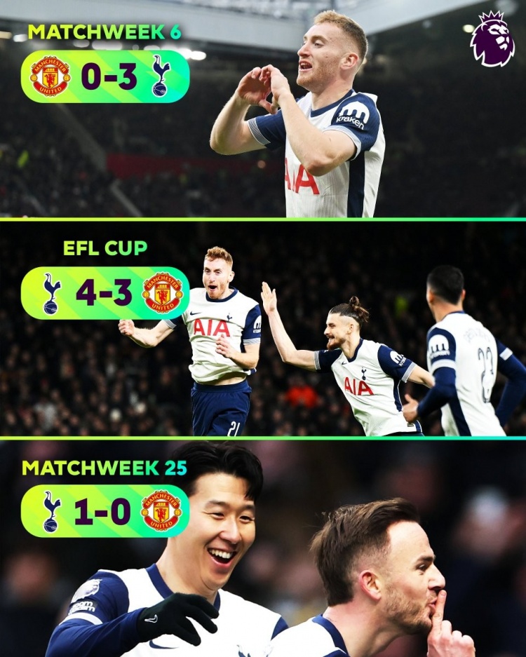 2月17日訊 熱刺在本輪英超主場(chǎng)1-0擊敗曼聯(lián),延續本賽季對曼聯(lián)的出色戰績(jì)。
