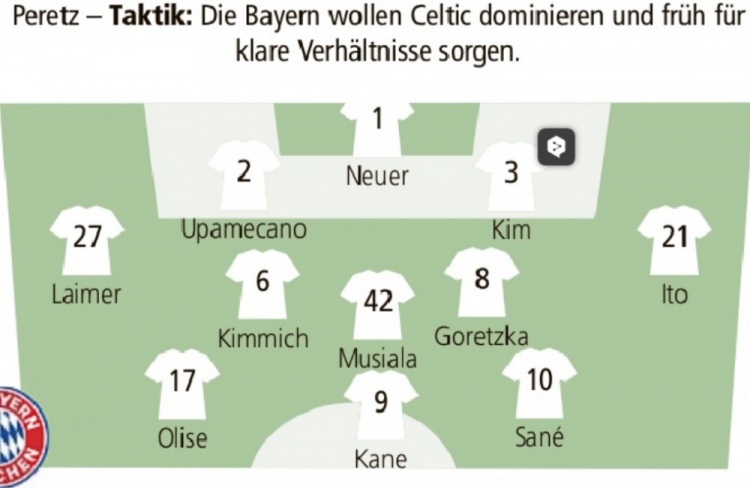 2月18日訊 北京時(shí)間周三凌晨的歐冠淘汰賽附加賽次回合,拜仁將在主場(chǎng)迎戰凱爾特人,《慕尼黑日報》對主隊的首發(fā)陣容進(jìn)行了預測,凱恩、薩內、奧利塞組成進(jìn)攻三叉戟。