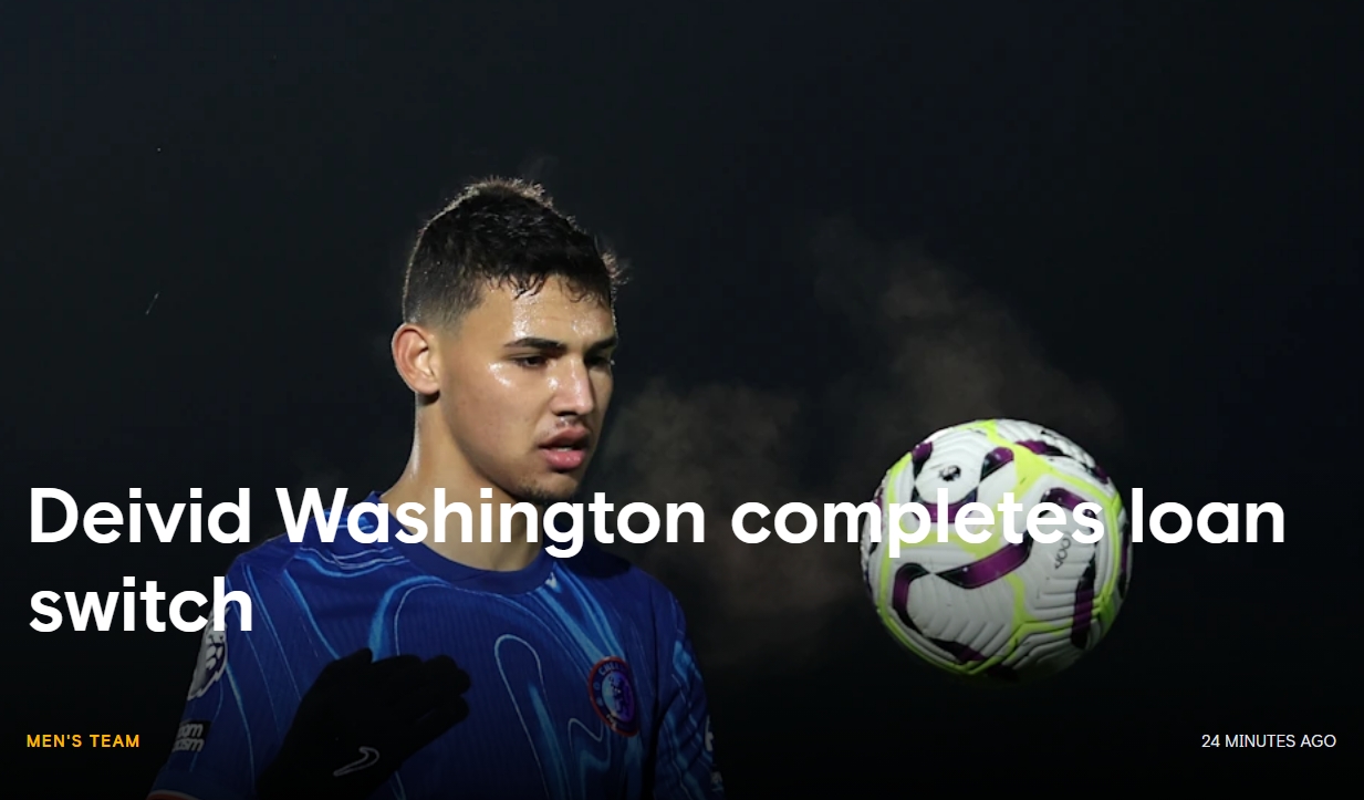 2月21日訊 切爾西官方消息,球隊前鋒戴維德-華盛頓租借加盟桑托斯。