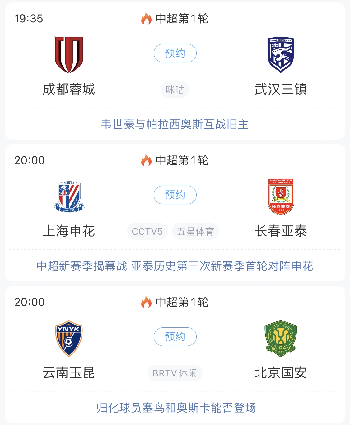 今晚,2025賽季中超聯(lián)賽就將拉開(kāi)帷幕!上海申花承辦開(kāi)幕式,主場(chǎng)迎戰長(cháng)春亞泰;球市火爆的成都蓉城迎戰武漢三鎮;中超新軍云南玉昆坐鎮玉溪高原主場(chǎng)迎戰國安,萬(wàn)眾矚目的塞鳥(niǎo)和奧古樓能否亮相?
