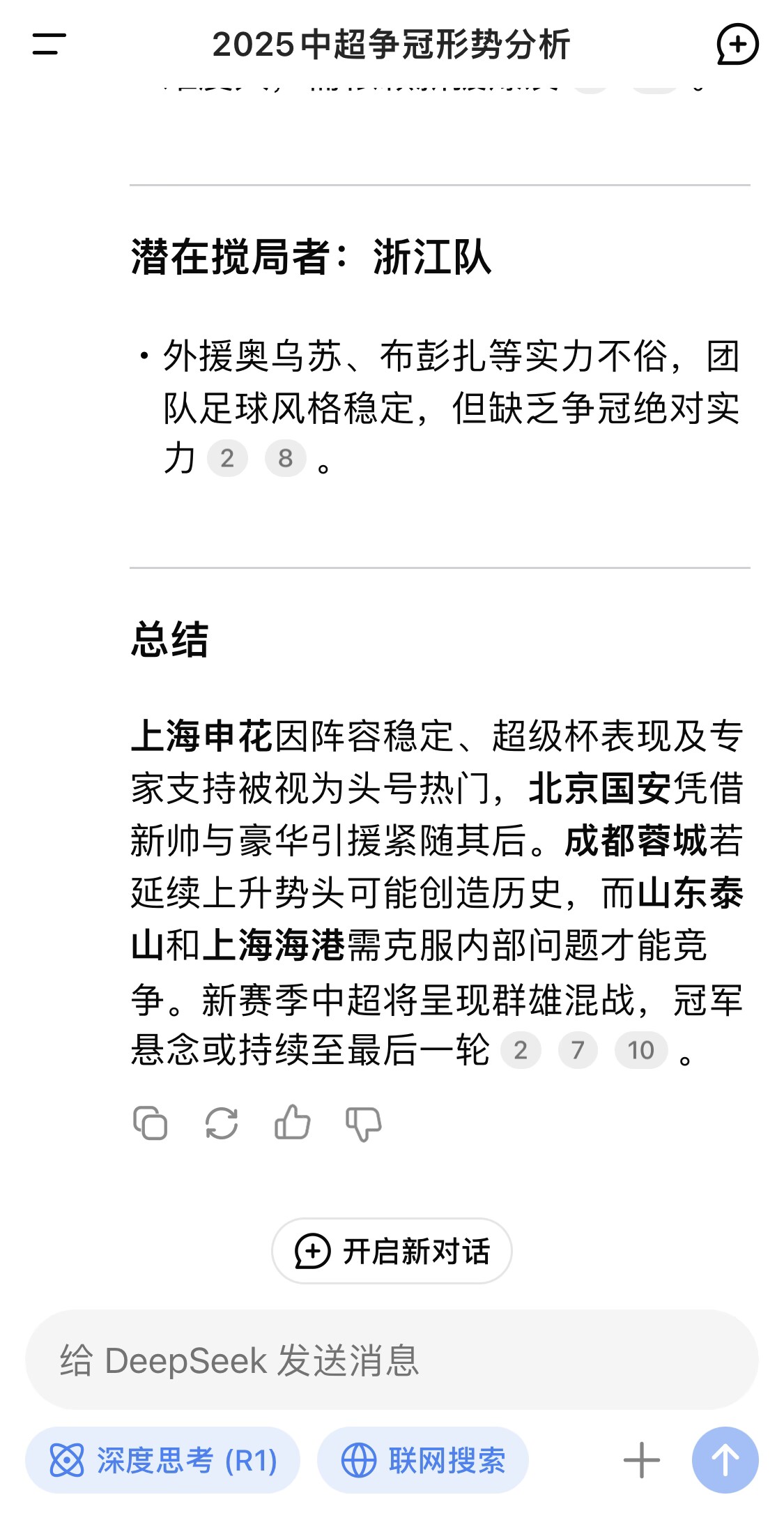 DeekSeek預測:申花是冠軍