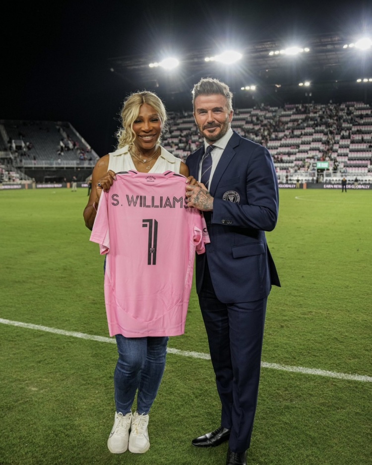 據邁阿密?chē)H官推顯示,網(wǎng)壇名將塞蕾娜-威廉姆斯(小威)來(lái)到現場(chǎng)觀(guān)看比賽,并獲得了球隊老板貝克漢姆的接見(jiàn),后者向小威贈送了一件印有她名字的球衣。