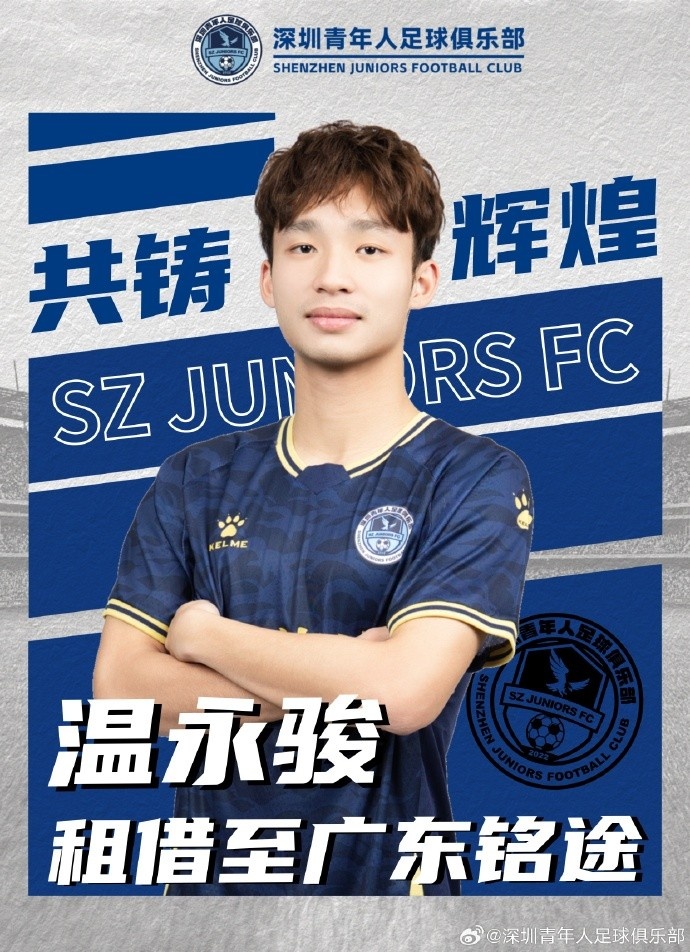 2月24日訊 官方消息,中甲深圳青年人隊球員鄭智銘、溫永駿,以租借形式加盟廣東銘途。